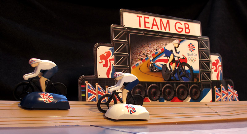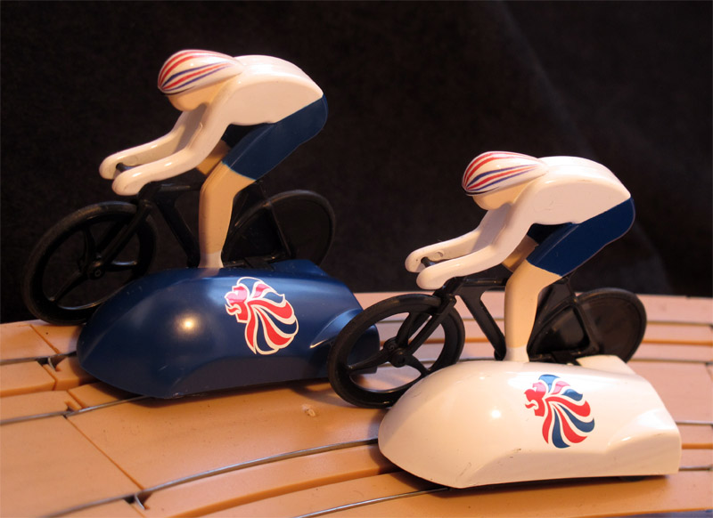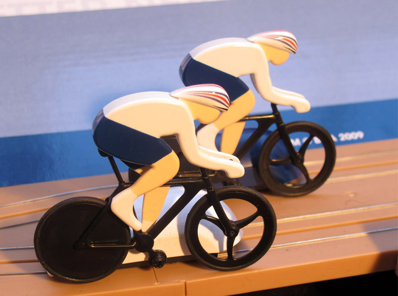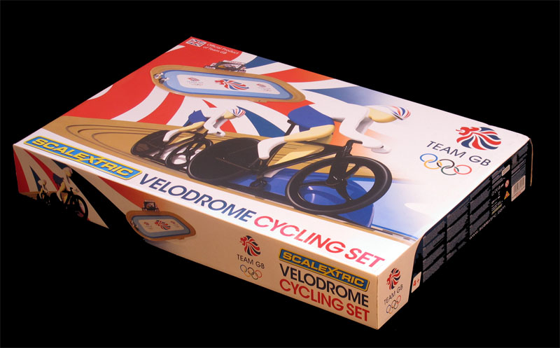 On the "pelouse" we read that the game is produced in 2009, but I have dated it in 2011, since it has not been available before. By the way, I wonder what is the name of the game. supposed to be, "Team GB"? Scalextric Velodrome Cycling Set"?