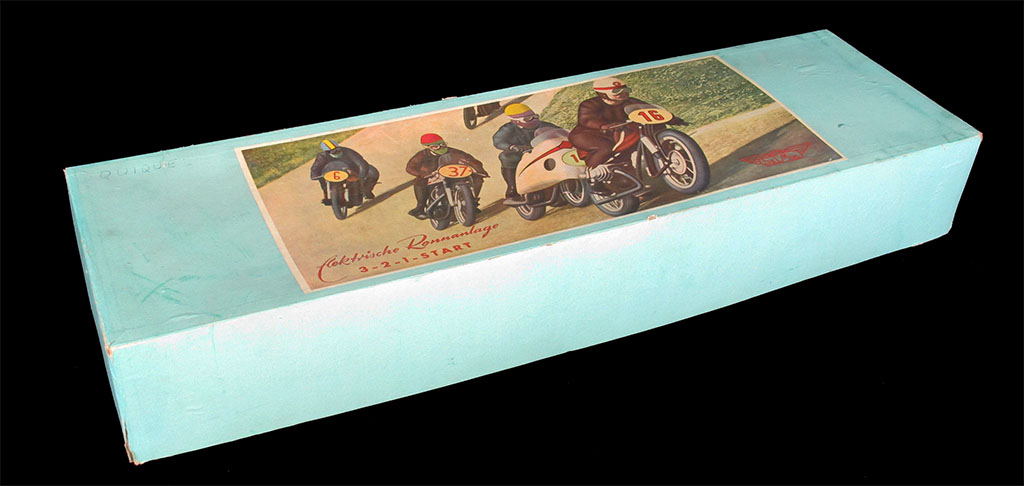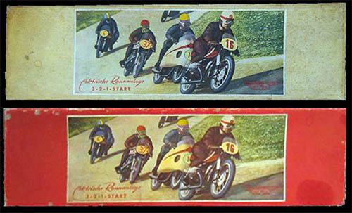 • The picture on the boxes of the German and Spanish games shows a scene in a German motorcycle race on July 22, 1956. The race took place only 30 km away from Fibro's site. The leading rider is the local hero of this Swabian region. Thus it's originally a Fibro picture.
