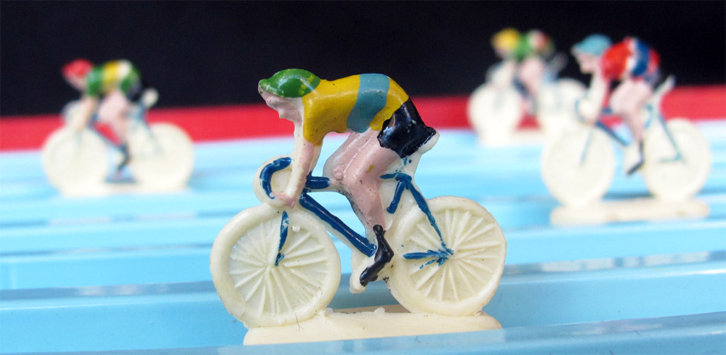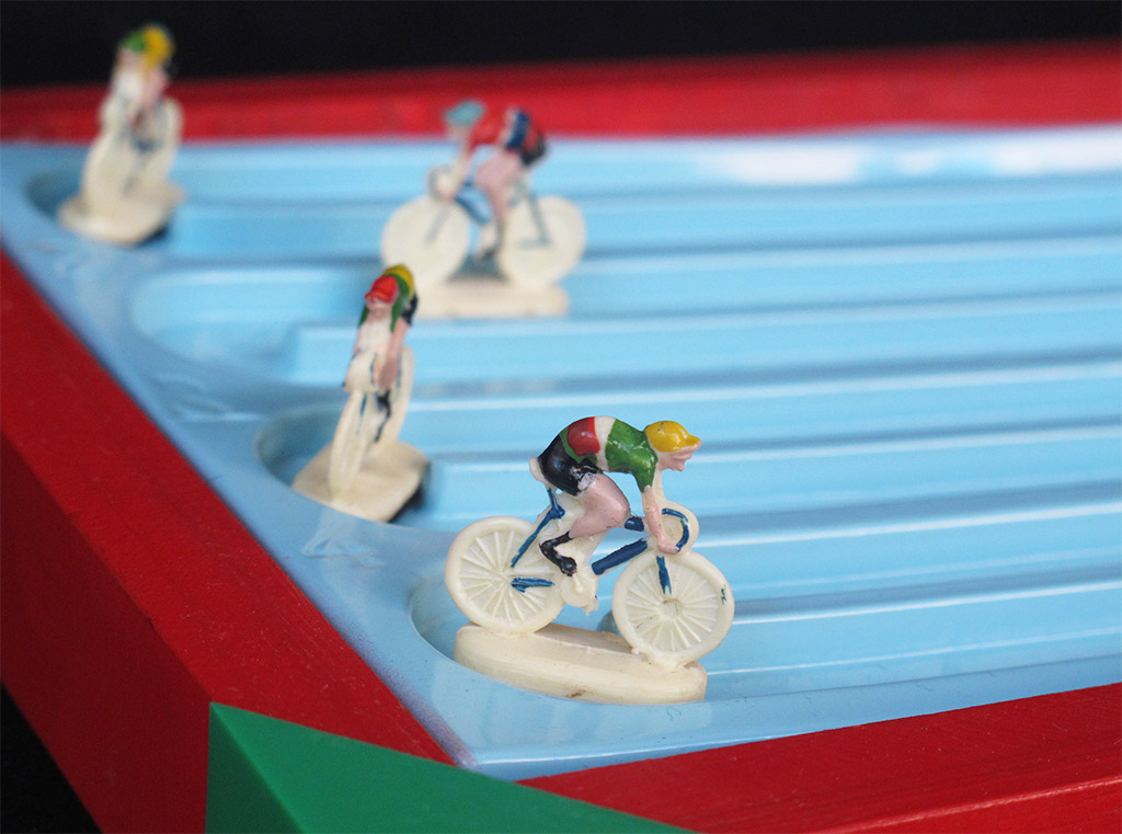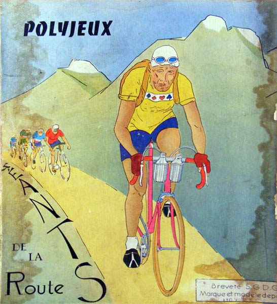 The game was also issued in France, by Polyjeux. It was called "Les Géants de la Route but, despite its unmistakably cycling-related name, it also included cars and horses. (Thanks, Marc, for the clarification).