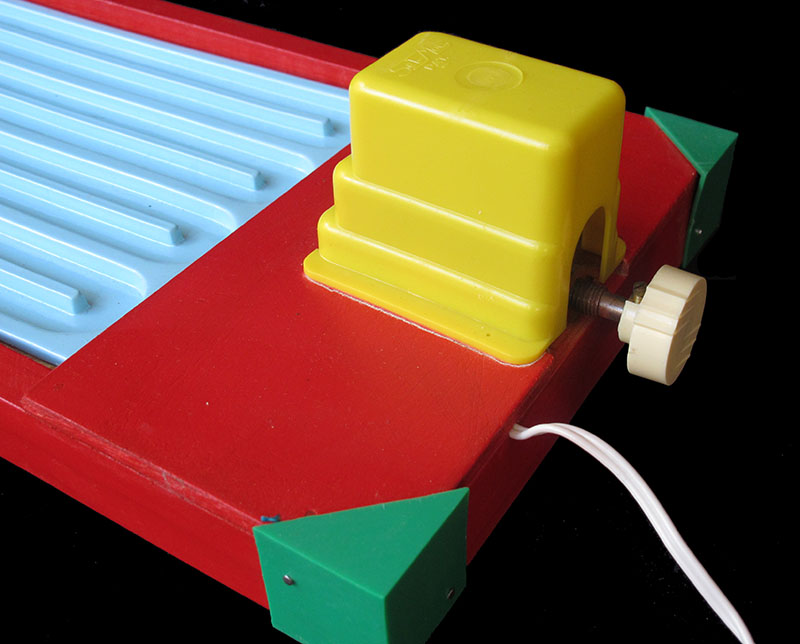 3. "Start zum Großen Preis" ("Start of the Grand Prix") is the most advanced and sophisticated version of this racing toy. This one only has two separated wider tracks, and each track has its own control! So two players can compete in a real race. This version has bigger cars, a fuel station instead of the pit lane building – and can be considered to be a racing "game of skill".